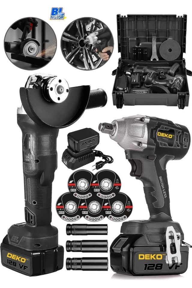 Deko Turkey Çift Vuruşlu Darbeli Somun Sıkma Bijon Seti ve 125mm Akülü Spiral Taşlama Makinesi Kömürsüz Seti | Güçlü Performans, Kablosuz Özgürlük!