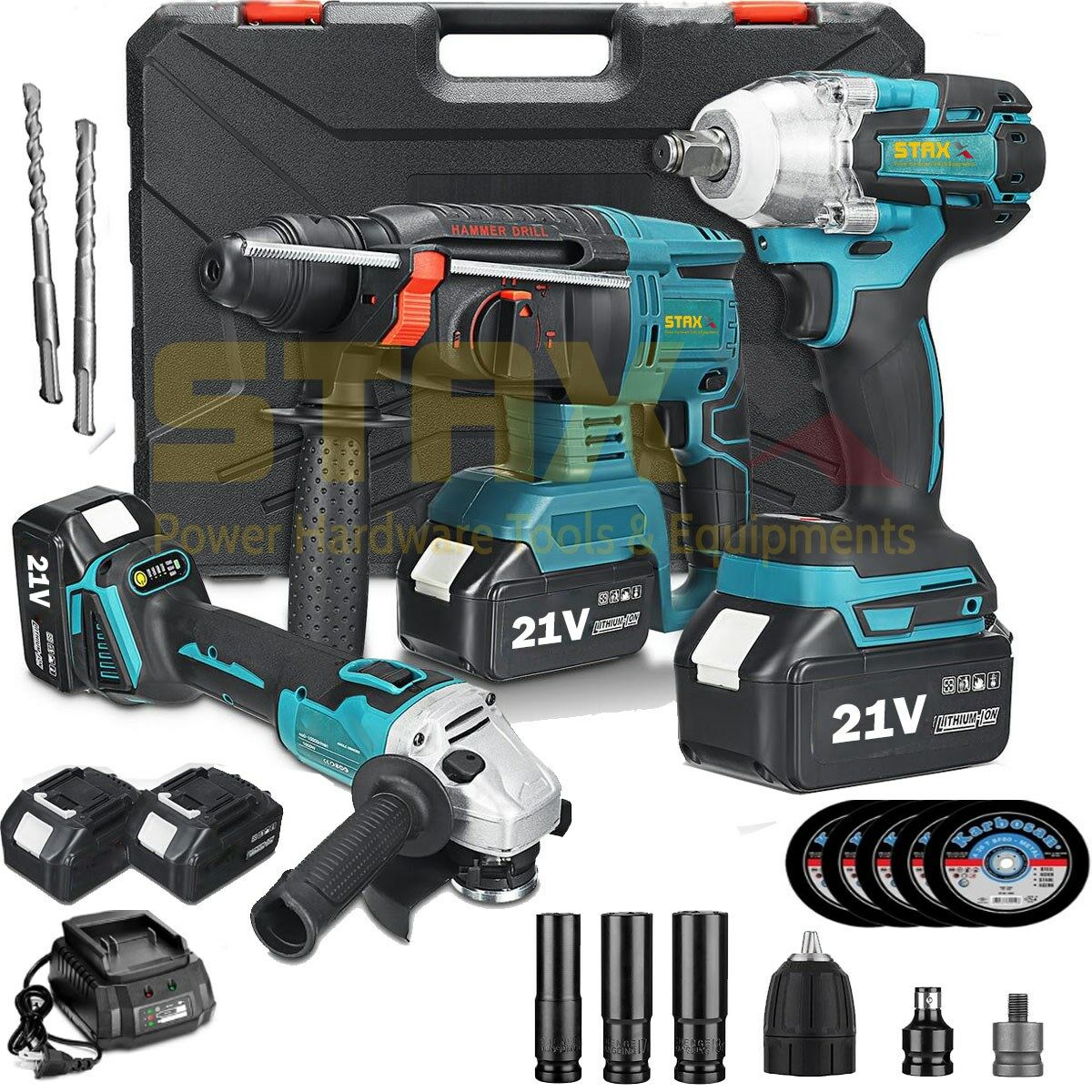 STAXX 3'lü Mega Set 21V Kırıcı Delici + Somun Sökme + Taşlama Seti
