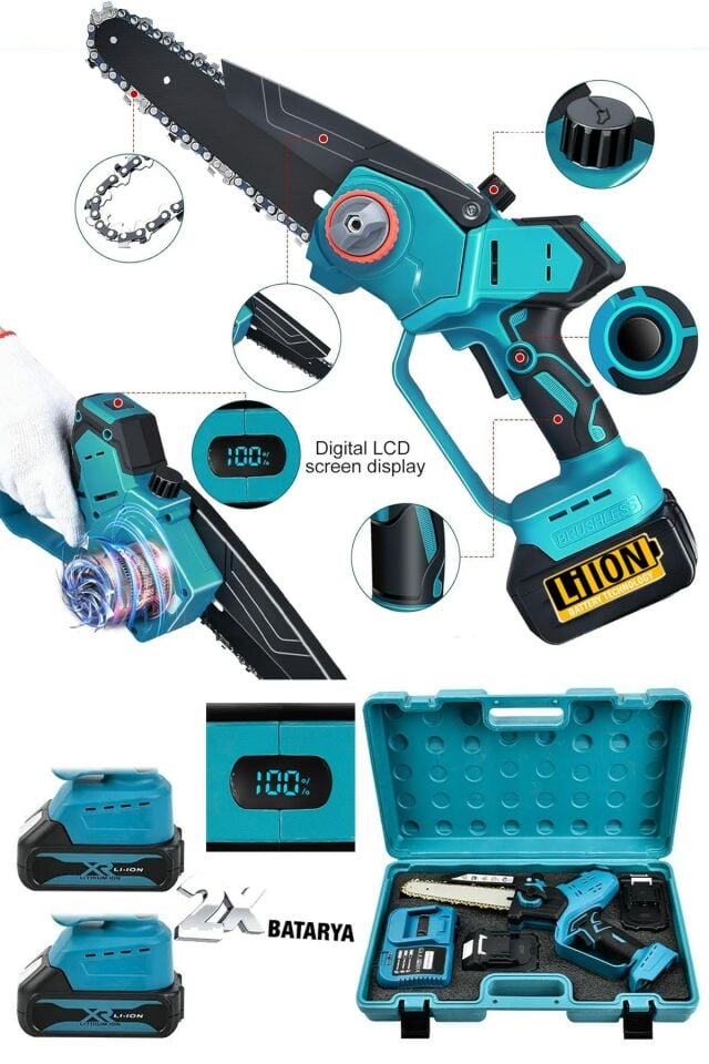 Titanyum Paslanmaz Motorlu Dijital Göstergeli Yağ Pompalı Şarjlı El Testeresi Ağaç Odun Dal Budama